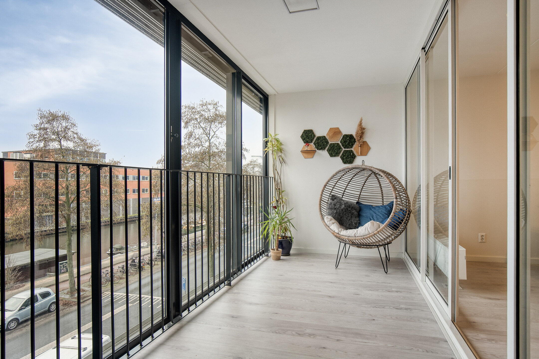 Mooi en licht 5-kamerappartement van ongeveer 125 m², dat deel uitmaakt van een uitstekend onderhouden complex. Vanuit de woonkamer heb je uitzicht op de moderne kade en het water van het Nieuwevaart kanaal. De drie slaapkamers en kantoor (dat gemakkelijk kan worden omgebouwd tot een vierde slaapkamer) kijken uit op het prachtig aangelegde Funenpark, dat is ontworpen door gerenommeerde architecten en meerdere prijzen heeft gewonnen. Dit kindvriendelijke, autovrije park kan dienen als een gedeelde achtertuin, perfect om te ontspannen, spelen, wandelen of te genieten van een picknick.