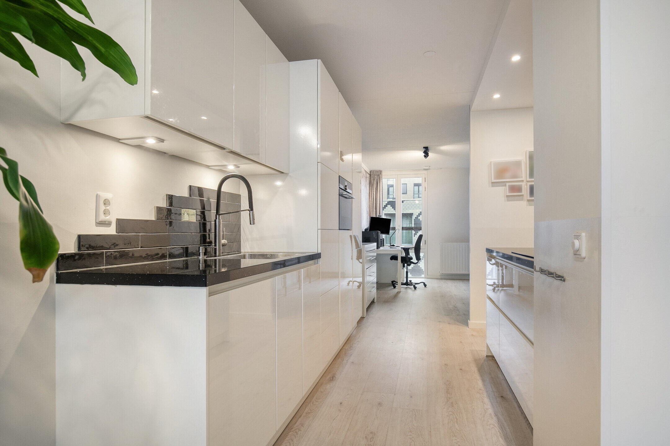 Een privé parkeerplaats in de ondergrondse garage is separaat te huur voor €200 per maand. Elektrische laadstation beschikbaar. Twee privé plekken in de beveiligde fietsenstalling zijn gratis beschikbaar!